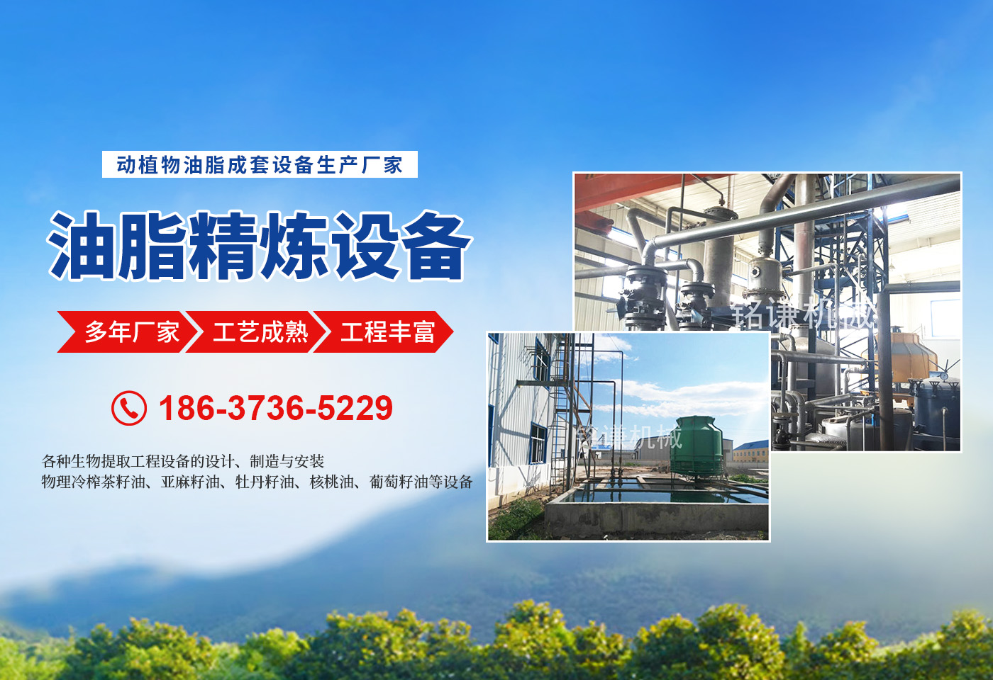 河南省銘謙機械設備有限公司,是集開發、科研、生產、安裝、調試、售后服務為一體的現代化企業。 我公司擁有優良的技術設備,為動物油熬煉設備,無公害化處理設備,核桃油設備,茶籽油設備,牡丹籽油設備,牡丹籽油機械產品的品質提供了有力的技術和質量保證?! 镉土项A處理、榨油成套設備的設計、制造與安裝?! 镉土辖鲈O備的設計、制造與安裝?! 锇脒B續,連續(化學)物理精煉設備的設計、制造與安裝。 ★茶籽油,牡丹籽油,核桃油,亞麻籽油,葡萄籽油的設備的設計、制造與安裝。 ★各種生物提取工程設備的設計、制造與安裝?! 锔鞣N(豬、牛、羊、雞、鴨等)油廠熬制、精煉設備的設計、制造與安裝?! 餄庀阈突ㄉ汀⒉俗延?、茶籽油、亞麻籽油、葵花籽油等設備的設計、制造與安裝?! 镂锢砝湔ゲ枳延?、亞麻籽油、牡丹籽油、核桃油、葡萄籽油等設備的設計、制造與安裝?! 锒诡惽謇碓O備、雜糧脫皮制粉設備、小麥制粉設備、大米加工流水線、小米加工流水線等設備的設計、制造與安裝。 ★各種過濾設備,化工設備的設計與制造?! ∥覀円怨に嚭托抛u求發展,以質量和設備求生存。堅持“質量為上,用戶為上”的宗旨為客戶提供完善的技術咨詢和售后服務。始終把產品質量作為企業生存、發展的主要要務,竭誠歡迎新老用戶光臨指導。
